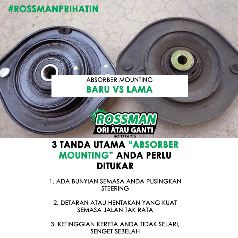 Sekiranya mounting absorber ini rosak ianya boleh menyebabkan bunyi seperti besi berlaga ketika kita membawa kereta dan sekiranya kerosakan dah agak teruk bila .